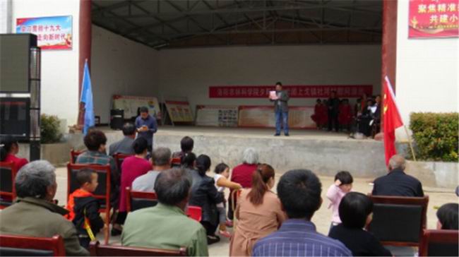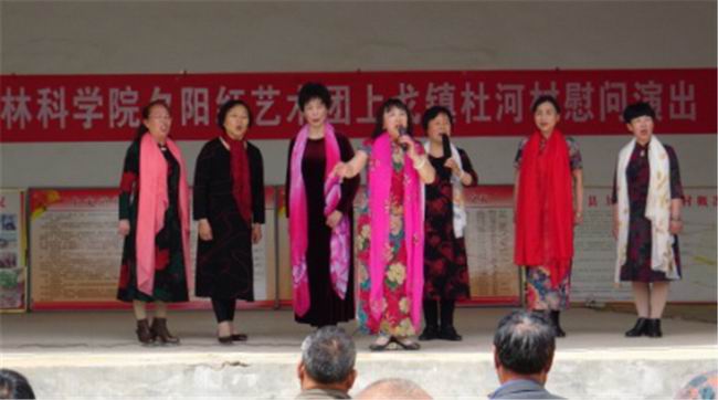 洛宁县上戈镇杜河村是e77乐彩定点帮扶村。今年来,e77乐彩以党建为引领,助力脱贫攻坚。结合实际,以产业扶贫为重点,开展丰富多彩的帮扶工作。扶贫先扶志,为了更好发挥好文化在脱贫攻坚中的重要作用,e77乐彩经过积极筹划,由党委委员、副院长蓝育才带队,组织农林科学院老干部夕阳红艺术团40余人到杜河村进行慰问演出,既宣传党的政策,又丰富群众文化生活,以文化人,寓教于乐,使大家切身感受党的精准扶贫政策和党的关怀,进一步坚定广大群众脱贫的信心。