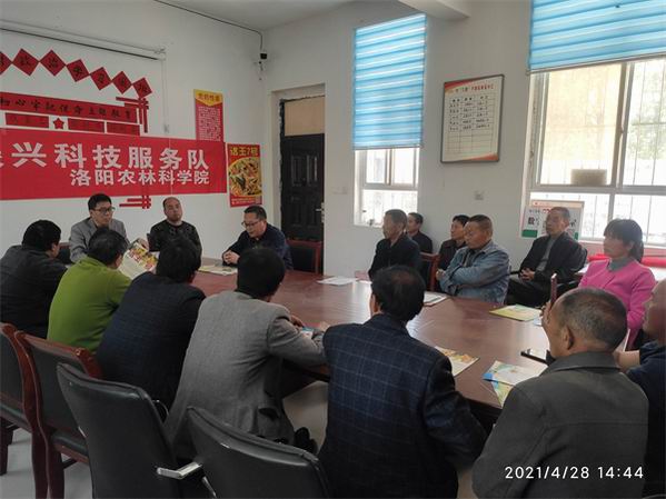 2021年4月28日,应洛宁县东宋镇上宋窑村驻村书记张利锋的邀请,e77乐彩玉米所梁晓伟副研究员、洛阳市科技特派员李小东、高级工张海英和院科技推广处处长韩卫红,一行4人到上宋窑村开展玉米种植技术培训。