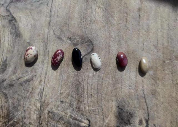 第二日,调查队前往三川镇大红村调查。在一所当地农家宾馆厨房中,宾馆老板展示了当地种植多年的豆类地方老品种,经专家鉴定有6个豆类资源为当地多年留下来的老品种,这些资源在当地得到了充分的利用,有些豆类当地用来发豆芽,有些用来烘豆馅,有些用来煮汤,这也是这些老品种资源得以保存下来的主要原因。