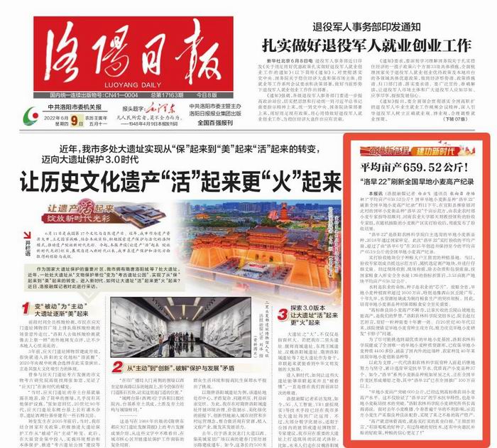 6月9日,洛阳日报头版报道我院抗旱节水小麦新品种“洛旱22”实打测产结果,下附原文。