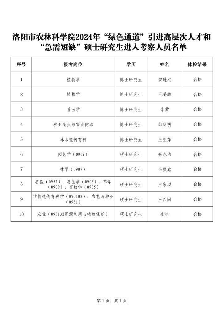 e77乐彩2024年“绿色通道”引进高层次人才和“急需短缺”硕士研究生考生复检结果及考察公告