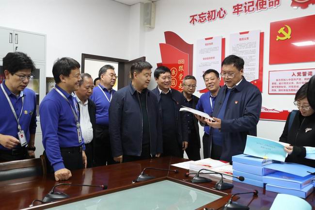 10月22日,省委党史学习教育第三巡回指导组组长邵景良、副组长李海民,成员丁大军、简斌、张文敬、蔡辽豫、李宗庆、马德原一行,在市人大副主任娄会峰、市委宣传部副部长李国强等领导陪同下,莅临我院调研指导党史学习教育工作。