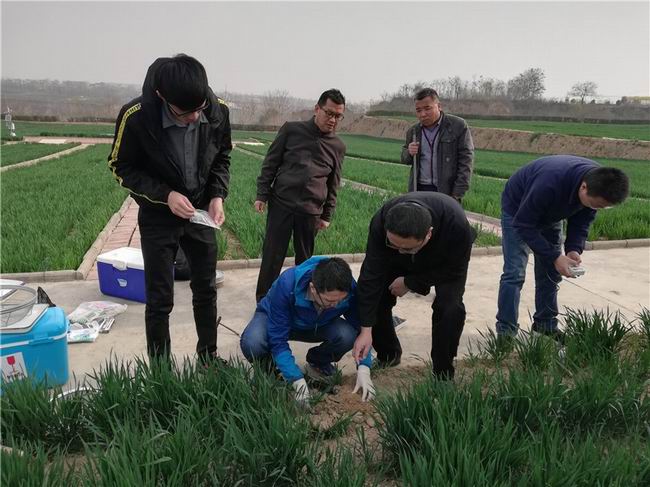 3月28日,金轲博士率领团队参观了位于孟津送庄的中国农科院洛阳旱作试验场,并对依托保护性耕作长期定位试验开展的研究试验进行了样品采集。
