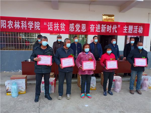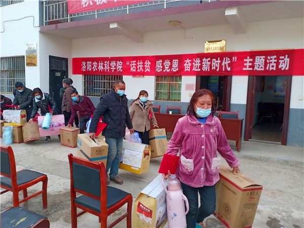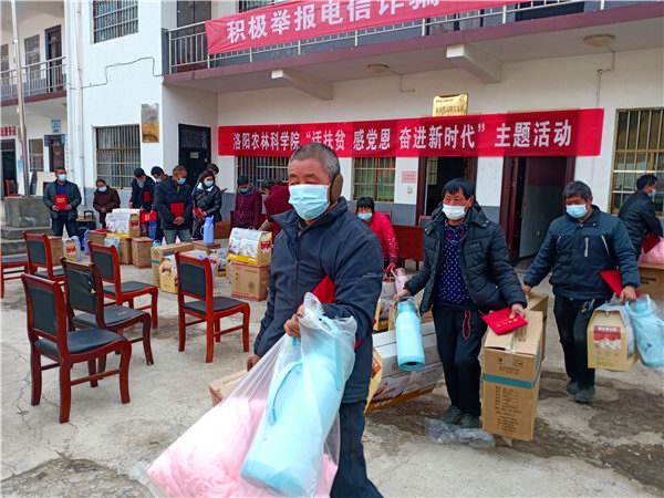 2021年2月7日,在新春佳节即将来临之际,院副书记兼纪委书记邓卫国同志和院党组成员、副院长、机关党委书记蓝育才同志带领院有关部门同志一行8人,到洛宁县上戈镇杜河村开展“话脱贫、感党恩、奋进新时代”主题活动。通过“大家谈”、“入户访”、“表彰会”、“写春联”等活动,使广大党员干部群众亲身感受脱贫攻坚带来的成就和变化,进一步坚定听党话、跟党走的信心和决心。