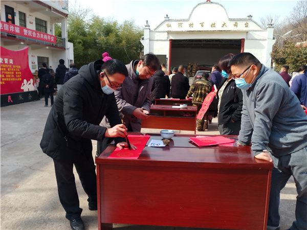 活动中,邓书记、蓝院长与上戈镇有关领导、院驻村三任第一书记、村脱贫能手代表、带富能手代表、村民代表等进行了交流座谈。一起讲帮扶干部中的好人好事,讲党的帮扶好政策,讲乡风文明的改善提升;召开了“脱贫能手、带富能手”表彰会,对杜河村20名“脱贫能手、带富能手”进行了表彰,颁发了证书和奖品;开展了到贫困户家中走访慰问活动,送去了慰问品和市直工会印发的80副春联,送上新春的祝福;邀请涧西区书法家协会10名会 员与院工会组织的5名书法爱好者一道,开展了为贫困户写春联公益活动,为全村所有贫困户家庭送去了翰墨飘香的新春礼物。