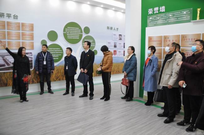 李绪潭一行先后参观了我院建院80周年成果展览室、党员活动阵地,观看了我院建院80周年宣传片,听取了赵保献副院长就我院坚持问题导向、强化政治统领、立足“四个服务”、深化“五大提升”、打造“四个高地”的“454”发展战略情况介绍,以及我院小麦研究所所长高海涛、牡丹研究所所长王占营、土壤肥料研究所所长姚宇卿分别做的打造国内领先的抗旱小麦育种、牡丹科研及黄河流域生态资源高效利用等四个科技创新高地的总体推进情况介绍。