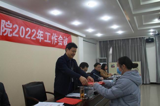 1月24日,我院召开2022年度工作会议,全面回顾总结2021年工作,安排部署2022年重点任务,同时隆重表彰先进集体和个人。院领导班子全体成员、副县级干部、离退休老干部代表、全体中层正职、获奖人员代表40余人参加会议,会议由党组成员、副院长黄江涛主持。各处室、所在会上递交了2022年工作目标责任书。