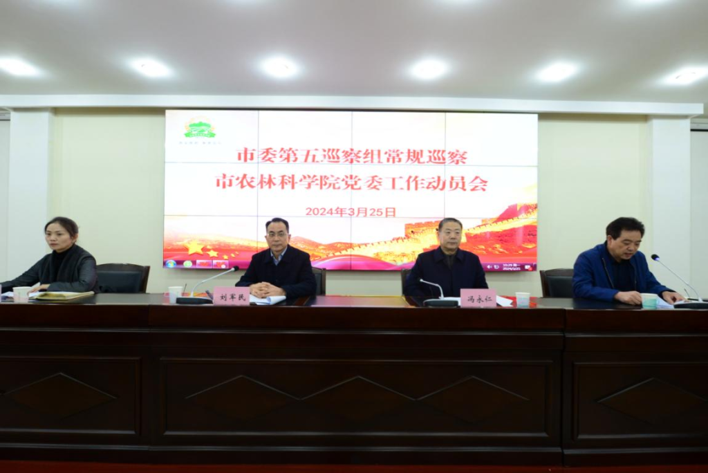 按照市委巡察工作部署,市委第五巡察组于近日进驻e77乐彩开展为期两个月左右的常规巡察。3月25日上午,市委第五巡察组常规巡察市农林科学院党委工作动员会议召开。会前,市委第五巡察组组长刘军民主持召开与市农林科学院党委书记黄江涛的见面沟通会,市委第五巡察组副组长冯永仁通报了本轮巡察任务及要求。会上,刘军民同志作了动员讲话,黄江涛同志主持会议并作表态讲话。