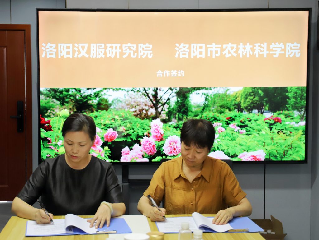 开辟牡丹价值转化新路>。牡丹产业正从单一的观赏到精深加工、文化创意等多产业链发展,我院在去年开创牡丹品种有偿转让的先河后,积极探索多元化转化方式,开辟新赛道,走近牡丹文旅文创产业,延伸牡丹科研价值,提升我院牡丹新品种的附加值,让我们在感受牡丹文化的魅力中增强对中华传统文化的自信与传承。扩大牡丹价值转化新领域。洛阳牡丹文化底蕴深厚,牡丹新文旅产业发展潜力巨大,作为我市文旅发展新亮点的汉服屡屡火爆“出圈”,把牡丹文化作为汉服研发的首推元素,依托我院的牡丹新品种和资源特点(品名、图片、特性、花语等)找到创作灵感,使汉服设计与洛阳牡丹文化、城市历史文化相结合,必将带动汉服文化持续火热。分分钟实现“梦回千年”,步步间沉醉“国色天香”。宣传牡丹文化价值新载体。数字全媒体时代,如何宣传好牡丹文化,洛阳汉服研究院副院长杨洁说“在汉服和网游中融入牡丹文化,让新生代的年轻人更加崇尚和热爱我们的传统优秀文化”。双方合作,未来将开发设计融入牡丹元素的服饰、网游、配饰等系列文创产品,将牡丹承载的“国色天香、吉祥富贵、和合共生”等寓意进行艺术创造,向世界宣传好牡丹文化,对提升中华文化影响力,彰显中华传统文化魅力意义特殊、作用关键。