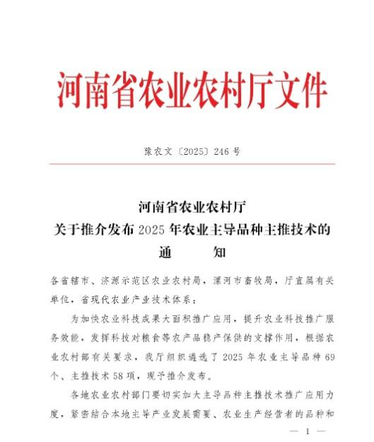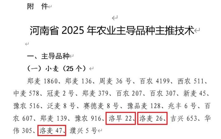 洛麦47、洛麦26、洛旱22荣耀入选河南省2025年农业主导品种