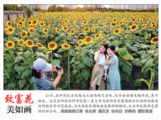 8月25日,洛阳日报和洛阳晚报头版报道我院与洛阳农发集团共建的油葵高效种植示范基地开出致富花,通过“科企联合”实现农旅融合,开辟了农民增收致富、产业振兴发展的新道路。