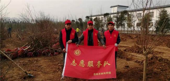 春回大地,天朗气清,伊河大堤一派热火朝天的劳动场面。8时许,伊河北岸洛龙区夏庄村段,三人随植树大军来到这里,一起参加义务植树。抬树、扶苗、填土、踩实、围堰、浇水。经过一番辛勤劳动,3人栽下了60余棵红叶李。