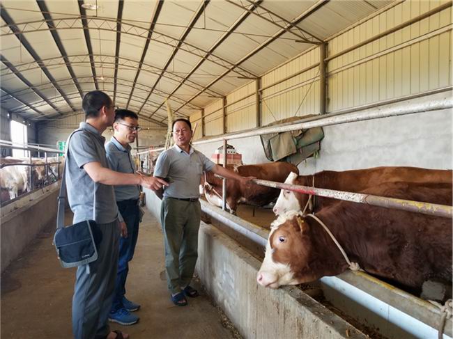 座谈会后,专家们又来到智志安的肉牛养殖场。该场是去年刚投产的养殖场,目前存栏肉牛40余头。由于去年的粗饲料准备不到位,影响了今年饲养规模的扩大,虽然目前肉牛市场形势较好,但持续增收受到一定影响。通过现场查看和交流沟通,专家们建议:扩大专用青贮玉米面积,提高机械收获面积,同时对青贮窖进行改造。