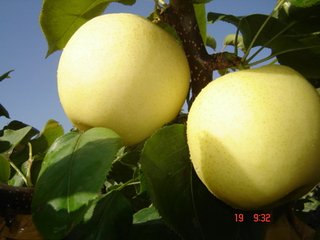 果实椭圆形,个大,平均单果重235克,最大果重360克。果皮黄色,果面光洁,果点小、中密果心小,果肉洁白,肉质细腻,松脆,石细胞及残渣少。风味酸甜适口并具浓郁香味。平均可溶性固形物含量为11.4%,8月上中旬成熟。品质综评极上。自然条件下可贮藏20天,冷藏条件下可贮至翌年三四月份。