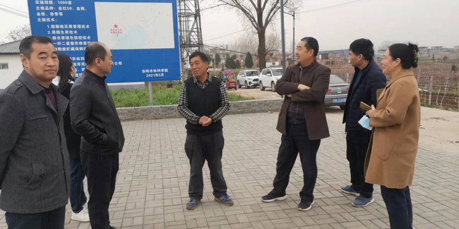 2022年3月16日,由我院植保所和果树所组成洛阳市林果产业科技特派员服务团与嵩县林业局联合开展科技服务,洛阳市科技局农村科科长宋彦哲、副科长张翼、嵩县科技和工业信息化局副局长张铭望等亲临现场对团队的科技服务工作进行检查和指导。