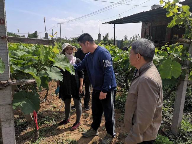 今年以来,我院果树研究所在院党组的正确领导下,紧扣市委乡村振兴“151”工作部署和我院“454”发展战略要求,积极开展科技服务,为新征程上乡村振兴注入“强心剂”。5月13日,在我院果树所所长姬延伟的带领下,果树所正高级工程师李灿、果树所工程师韦静波一行人先后来到了嵩县田湖镇樊店村的葡萄生产基地和嵩县陆浑镇千亩猕猴桃基地开展科技服务。