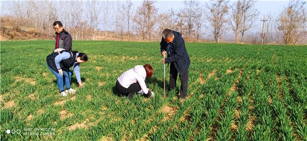 自麦播后,我市经历了秋冬春基本无有效降雨情况下,旱作麦田生长形势严峻。为了解我市旱作小麦生产现状,土壤肥料研究所全体人员深入生产一线,于2021年2月22-24日,到新安、宜阳、伊川、偃师、孟津、洛宁、嵩县等地开展旱作麦田土壤墒情测定工作,除孟津和新安部分麦田外,多数旱作麦田处于中度干旱或重度干旱。