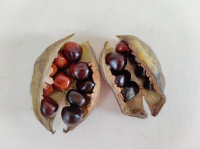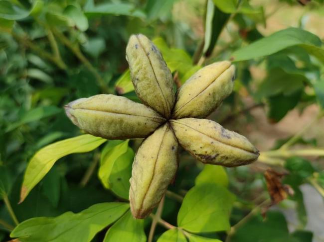 2、采收标准:当蓇葖果果皮变成蟹黄色,种子呈黑色、褐色或红褐色,且种子不粘手时进行采收。
